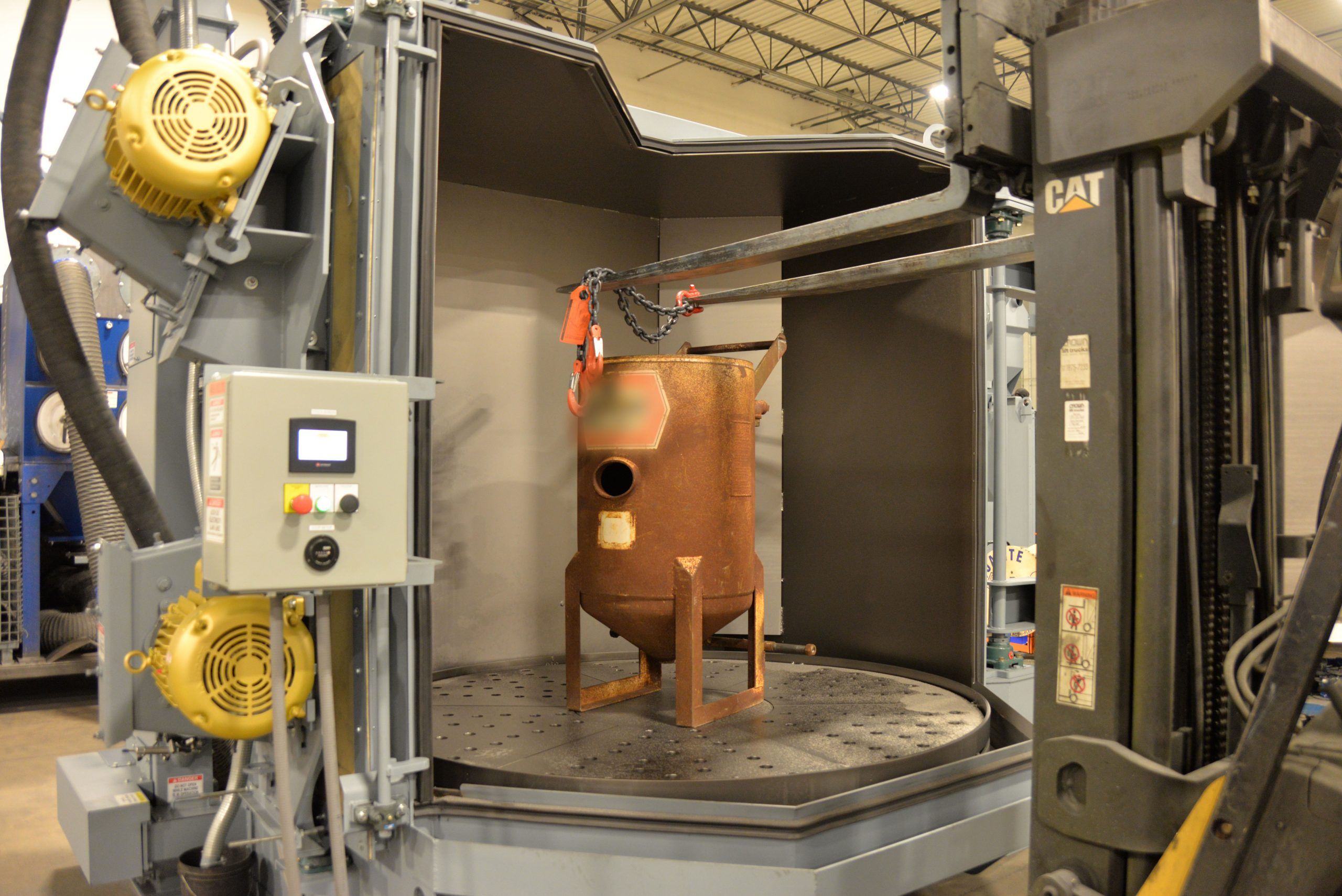 - Blast wheels mounted on an oscillating pod to decrease cycle time and increase coverage.